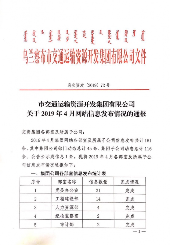 關(guān)于市交通運(yùn)輸局2019年4月網(wǎng)站信息發(fā)布情況的通報(bào)