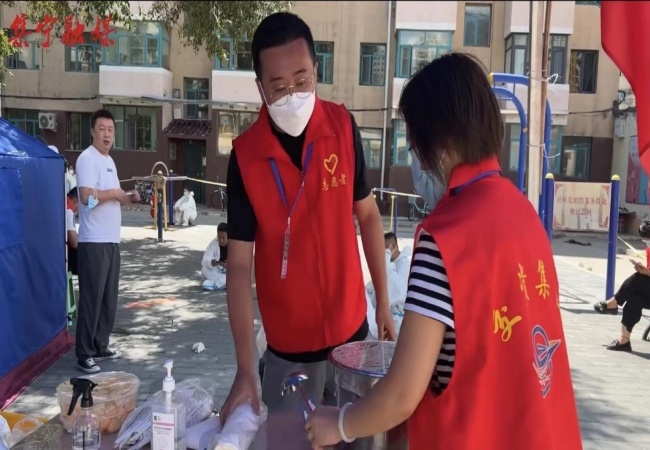 在通佳花園進(jìn)行核酸采樣的醫(yī)護(hù)人員端起綠豆湯說:“好甜好清涼。雖然天氣炎熱,但我們感受到了滿滿的關(guān)懷,讓我們充滿力量,始終做好本職工作,采好每次核酸,我們堅(jiān)信一定能打贏這場(chǎng)戰(zhàn)‘疫’?!?/span>