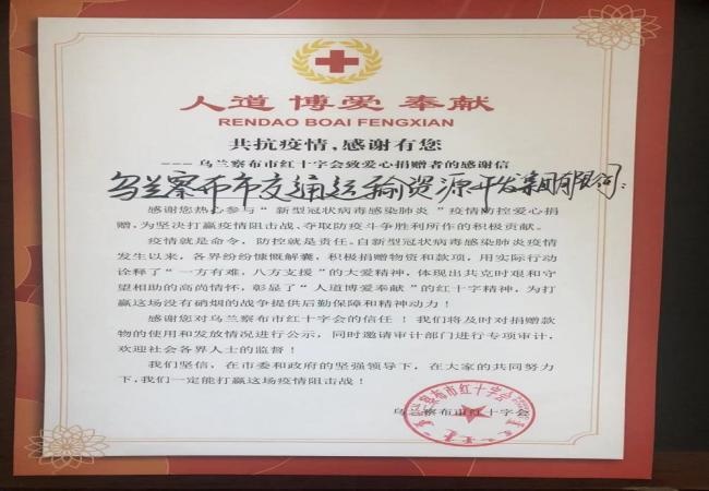 疫情阻隔了空間的距離,卻阻擋不了愛心的匯聚,8月10日,烏蘭察布市交通運輸資源開發(fā)集團有限公司積極履行社會責任,勇伸援助之手,發(fā)動全集團7家公司、9個建管辦、37家參建單位募捐,累計捐款102810元,用實際行動支援疫情防控第一線,奏響“戰(zhàn)疫”同心樂章。