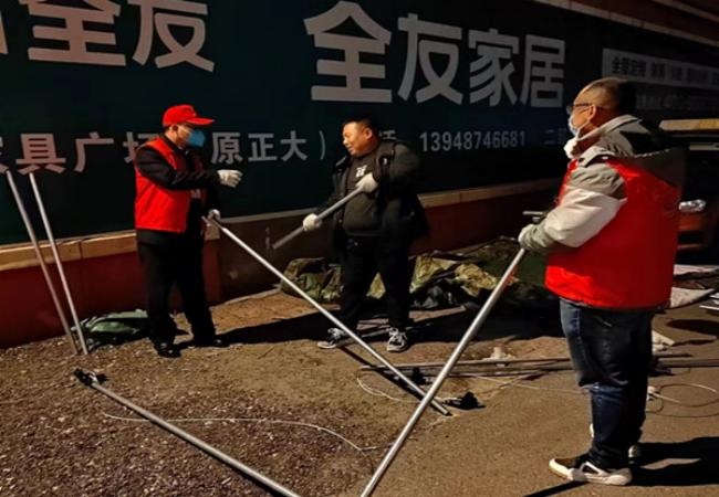 當晚搭建帳篷,交資集團常務副總經理張志親臨現(xiàn)場檢查指導抗疫帳篷安全性、保暖性建設,并與現(xiàn)場干部職工干在一起,大家不畏嚴寒和繁重任務,依然忙碌不停,一分一秒不敢耽誤,與時間賽跑,與疫情抗爭,經過2小時連續(xù)作業(yè),高效搭建完成抗疫暖心帳篷。