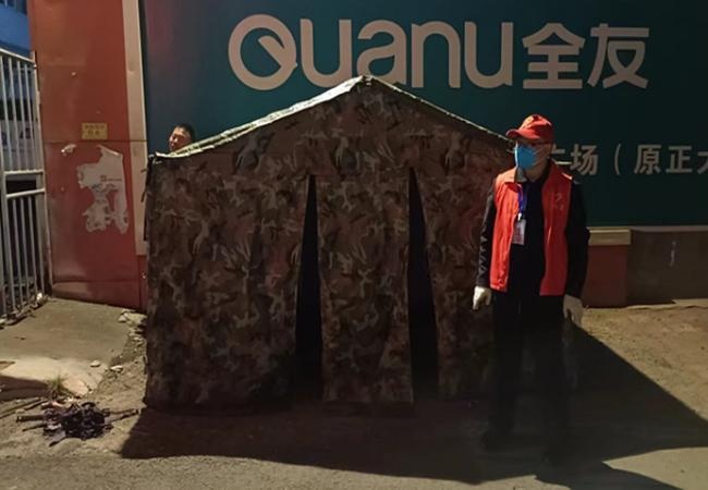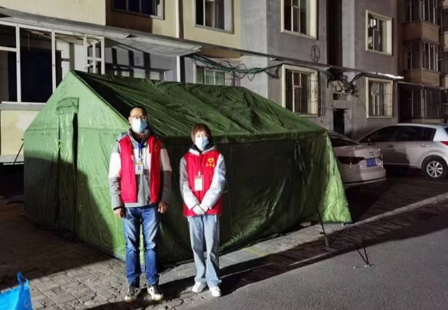 暖心帳篷的搭建,改善了一線人員的工作環(huán)境,幫助值班值守人員抵御低溫寒冷天氣,確保小區(qū)值守工作有序進行。