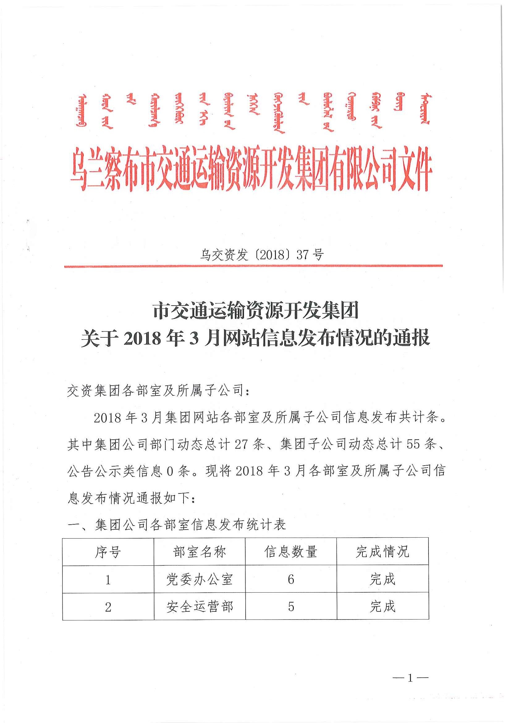 市交通運(yùn)輸資源開發(fā)集團(tuán)關(guān)于2018年3月網(wǎng)站信息發(fā)布情況的通報(bào)